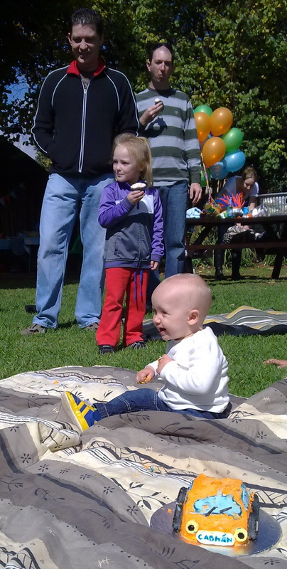 | Cabhan getting tucked into his cake! |